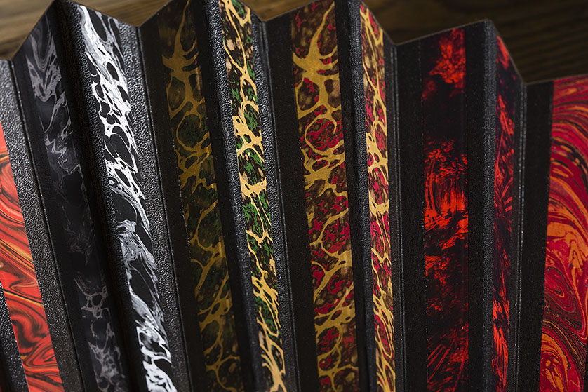 Bellow hand made, pressboard with goat's leather corners pasted with coloured paper in various finishes, 2 sizes possible